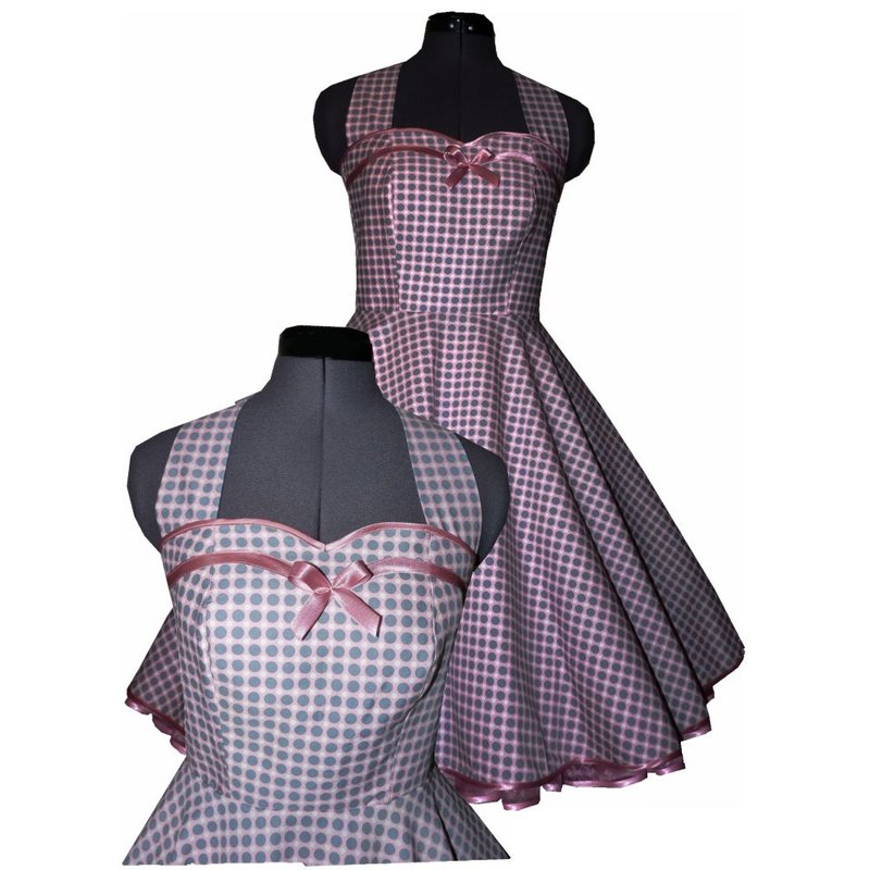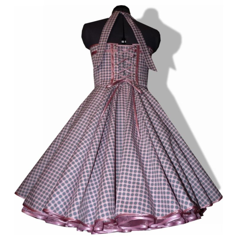 50er Jahre Kleid zum Petticoat Vintage rosa graue Punkte Dots Rockabilly 36 gewünscht rosa