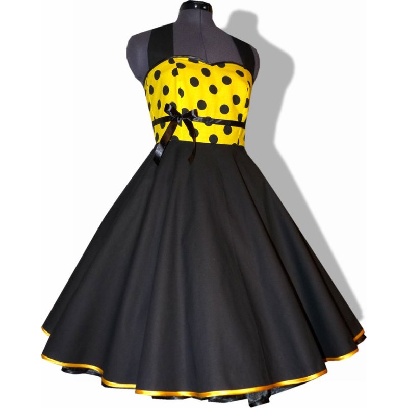 50er Petticoatkleid Tanzkleid gelb schwarze Punkte zum Petticoat 34-44 34 nicht gewünscht