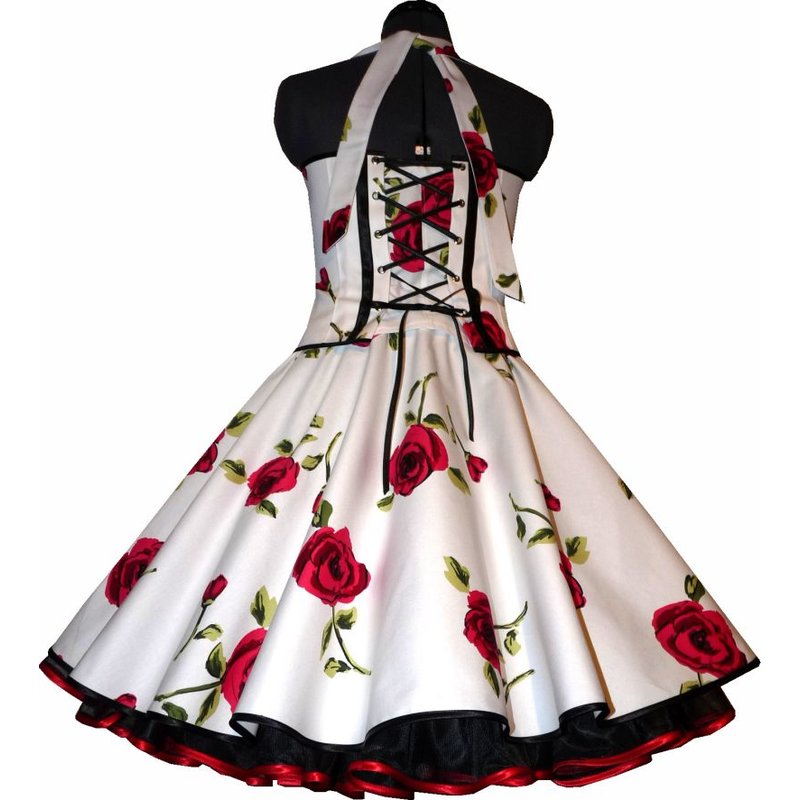 Wunderschönes weißes Petticoatkleid im 50er Jahre Stil zum Petticoat mit roten Rosen.
