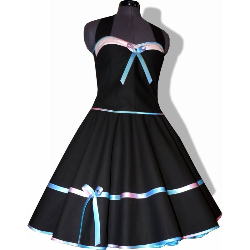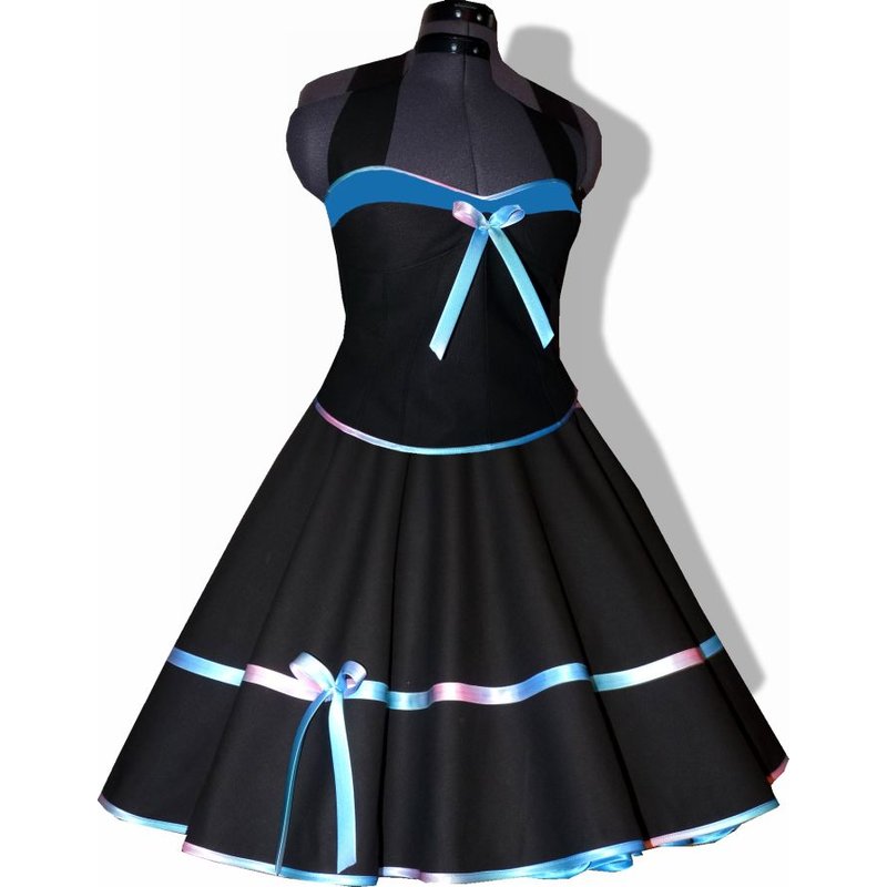 Schwarzes festliches Kleid zum Petticoat der 50er Jahre mit leuchtenden Akzenten.