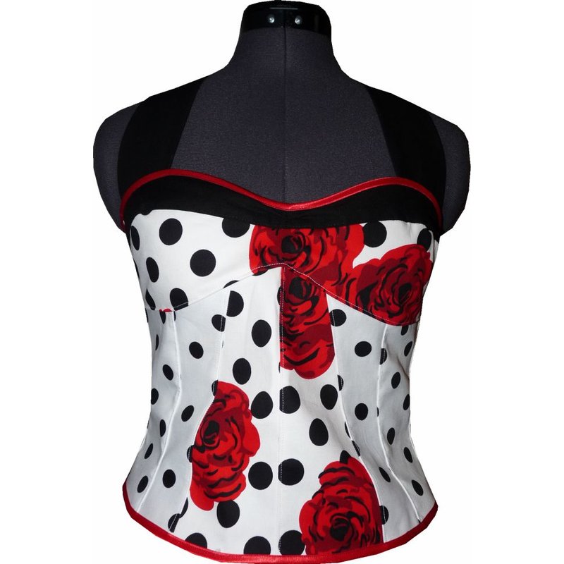 Top im 50th Stil inweiß mit schwrzen großen Punkten und roten Rosen