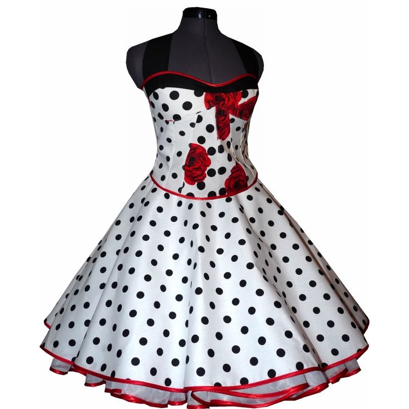 Ob als strahlende Braut im zauberhaften 50er-Jahre-Brautkleid oder im süßen Kirsch- oder Erdbeerkleid zum Tanzen auffällig schön ausgehen – hier finden Sie für jeden Anlass und Geschmack das passende Outfit. Typisch für die 50er sind auch unsere bunt gemusterten Tellerröcke, die Sie mit einem fluffigen Petticoat aus Tüll richtig zum Schwingen bringen.