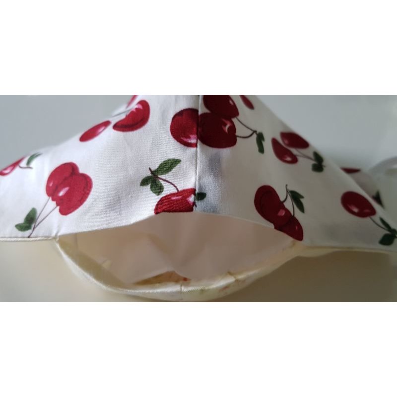 • Gummibänder zur Befestigung an den Ohren . Falls Sie Bindebänder wünschen, so kontaktieren Sie uns bitte. Bänder haben einen Aufpreis von 3,50€.
