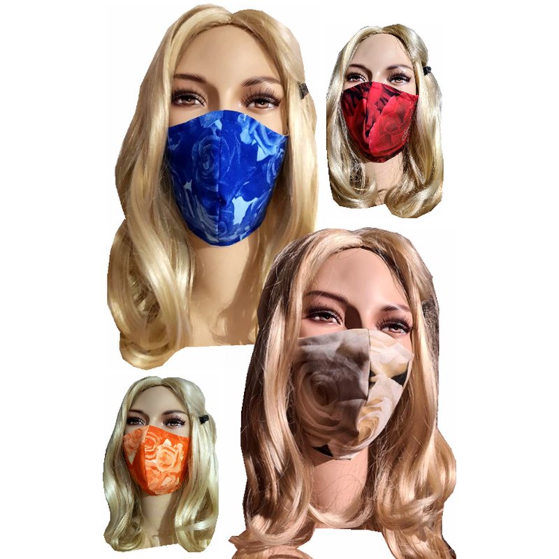 Exklusive Mundmaskemot orangen oder royalblauen Rosenmotiv