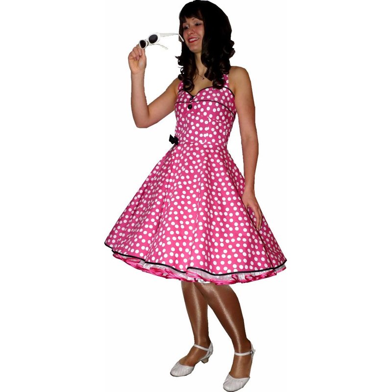 - Einteiliges Tanzkleid mit tellerweitem Rockteil in pink mit weissen Punkten im Durchmesser von 15mm.
