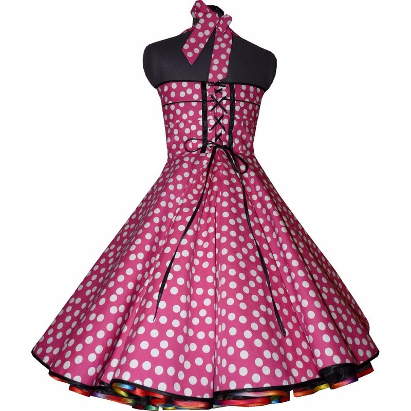Neues Rockabillykleid zu jeder Petticoatweite in trendigem Pink mit weissen Punkten